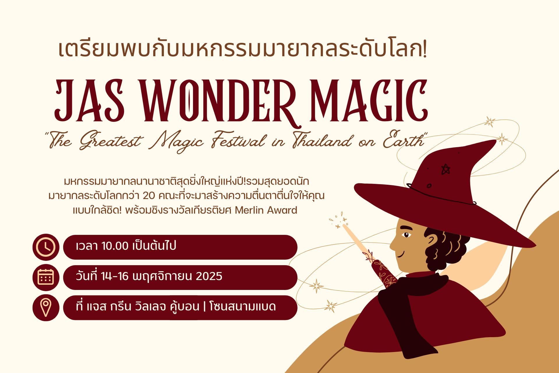 มหกรรมมายากลนานาชาติสุดยิ่งใหญ่แห่งปี JAS Wonder Magic Competition 2025 กำลังจะมา! เตรียมพบกับ สุดยอดนักมายากลระดับโลกกว่า 20 คณะ ที่จะมาสร้างความตื่นตาตื่นใจแบบใกล้ชิด บนเวทีมหัศจรรย์ที่เต็มไปด้วยกลเม็ดมายากลสุดตระการตา