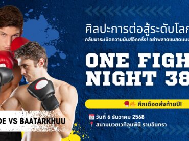 🔥 พร้อมระเบิดความเดือดส่งท้ายปี! 🔥 ศึกแห่งศักดิ์ศรีที่แฟนศิลปะการต่อสู้ทั่วโลกรอคอยกำลังจะมาถึงอีกครั้ง กับการปะทะกันแบบใกล้ชิด ที่จะทำให้หัวใจคุณเต้นแรงทุกวินาที! 💥 ONE FIGHT NIGHT 38 – ANDRADE VS BAATARKHUU งานศิลปะการต่อสู้ระดับโลก ที่นักสู้ชั้นนำจะมาประชันฝีมือในสังเวียนอย่างดุเดือด มาดูกันว่าใครจะยืนหยัดจนถึงวินาทีสุดท้ายและคว้าชัยชนะไปครอง! งานนี้แฟน ๆ จะได้สัมผัสบรรยากาศสุดมันส์จากสังเวียนแบบใกล้ชิด รู้สึกถึงทุกจังหวะหมัด, การฟาดเท้า, และความตื่นเต้นของการแข่งขันแบบเรียลไทม์ นอกจากนี้ยังมีนักสู้ชื่อดังอีกหลายคนที่จะขึ้นสังเวียนในแมตช์รอง ทำให้ค่ำคืนแห่งศิลปะการต่อสู้ครั้งนี้เต็มไปด้วยพลังและอารมณ์ที่เข้มข้น 💥 ไฮไลท์ที่ไม่ควรพลาด: การปะทะระหว่าง Andrade vs Baatarkhuu ที่แฟน ๆ รอคอย เทคนิคและสไตล์การต่อสู้ที่หลากหลาย บรรยากาศสุดมันส์จากผู้ชมแบบใกล้ชิด เตรียมตัวให้พร้อม! ทุกวินาทีในสังเวียนจะเป็นความตื่นเต้นที่ไม่สามารถละสายตาได้ ห้ามพลาดแม้แต่เสี้ยววินาทีเดียว เพราะนี่คือ ศึกที่แฟนศิลปะการต่อสู้ต้องจดจำ 📅 วันที่: 6 ธันวาคม 2568📍 สถานที่: เวทีลุมพินี (รามอินทรา) หลังจากสนุกกับศึก ONE FIGHT NIGHT 38 […]