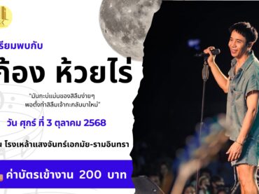 คอนเสิร์ตพิเศษ “ก้อง ห้วยไร่” @ โรงเหล้าแสงจันทร์ เอกมัย – รามอินทรา หากคุณเป็นแฟนเพลงลูกทุ่งอีสาน หรือกำลังโหยหาบรรยากาศเสียงเพลงอบอุ่นจากศิลปินขวัญใจมหาชน “ก้อง ห้วยไร่” เตรียมตัวให้พร้อม! เพราะคืนวันศุกร์ที่ 3 ตุลาคม 2568 นี้ คุณจะได้เจอกับโชว์เต็มอิ่ม จัดหนัก จัดเต็มทั้งเพลงฮิต เพลงซึ้งกินใจ และความม่วนสุดมันส์ในแบบฉบับของก้อง ห้วยไร่ ที่ใครฟังก็ต้องหลงรัก 💙 ไฮไลต์ที่ห้ามพลาด ✨ เพลิดเพลินไปกับเสียงร้องสุดอบอุ่น และท่วงทำนองลูกทุ่งอีสานแท้ ๆ ✨ สนุกครบรส ทั้งเพลงช้า เพลงเศร้า และเพลงม่วน ๆ ที่ทุกคนร้องตามได้ ✨ บรรยากาศสนุกสนานที่อบอวลไปด้วยมิตรภาพและเสียงหัวเราะ รายละเอียดงาน 📅 วันศุกร์ที่ 3 ตุลาคม 2568 💰 ค่าเข้าชมเพียง 200 บาท (บอกเลยว่าคุ้มสุด ๆ สำหรับคอนเสิร์ตใหญ่ในบรรยากาศเป็นกันเอง) 📍 สถานที่ […]